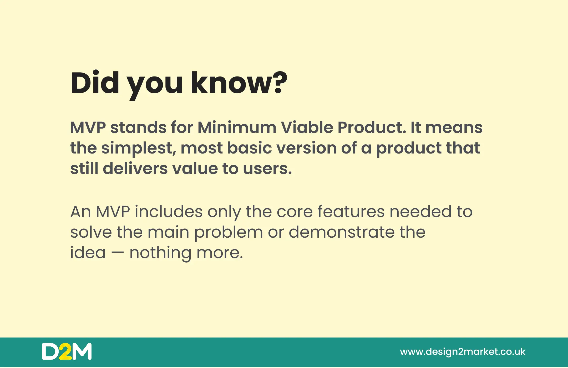 Trying to make one product meet too many needs is a common trap. One that usually leads to complexity, higher costs, and longer timelines. Focus on your core features and aim for a minimum viable product (MVP) that performs its key job beautifully. You can always build on success later.